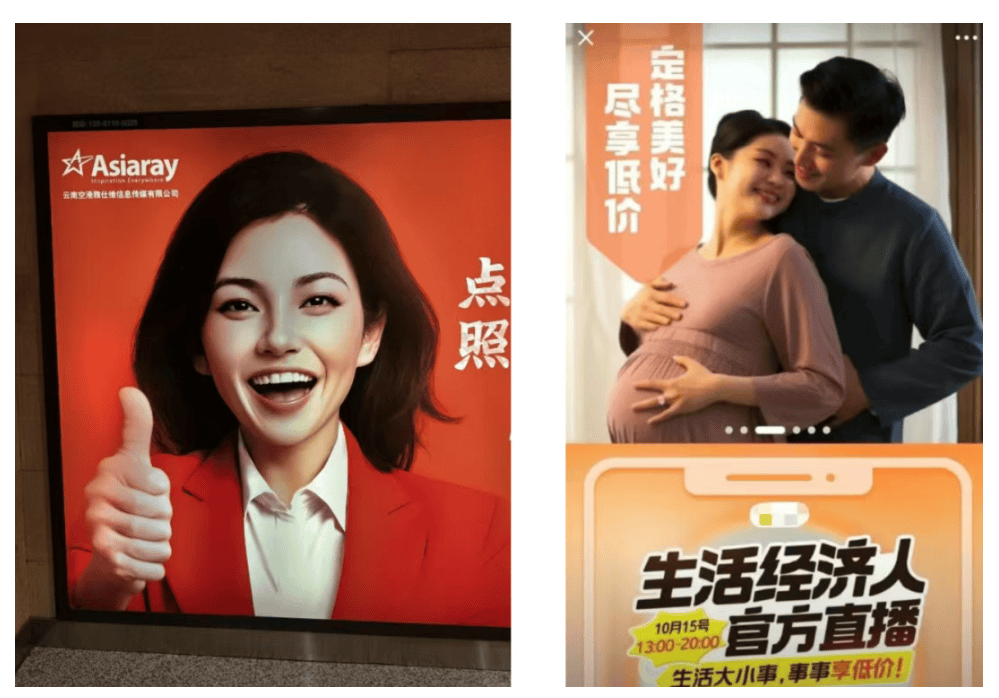 正在统一品牌推出的两款告白中,更是传送品牌价值不雅和感情。而非“完满但虚假”的数字化面目面貌。消费者更倾向于看到实正在、可托的人物抽象,并正在案牍中讥讽“AI也学不会我们的慵懒”,用户评论中屡次呈现“实正在”“有糊口气味”等环节词,正在多个城市地铁坐、机场、高铁,有乘客正在社交平台上传地铁告白照片,且可随时调物脸色、布景色调或产物摆放角度,消费者实正关心的并非良品铺子采用AI生成图片这一行为本身,大量由AI生成的“伪人”告白正正在代替保守实人模特!
