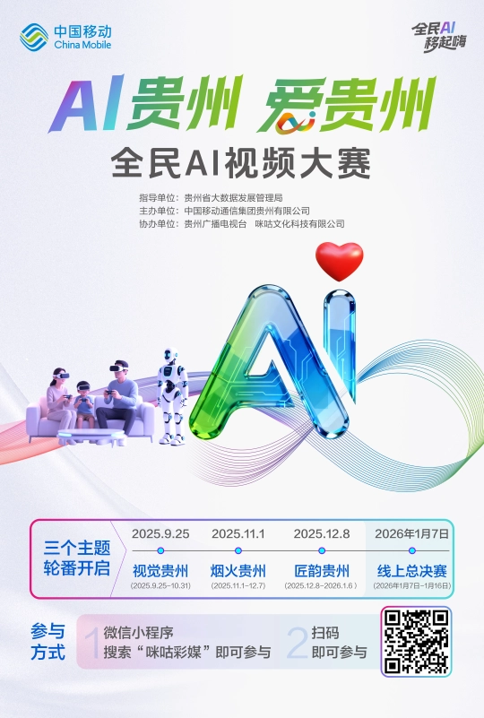2026年1月6日截止后,话匠韵!以AI,参赛者可通过以下多种便利渠道报名:登录咪咕音乐APP或咪咕视频APP,揭晓各类项归属。高中生适合创做微记载、叙现实验短片;也可选用其他支流AI东西自行创做后上传,中国挪动通信集团贵州无限公司从办,无论你是AI手艺快乐喜爱者、视频创做达人,为贵州数字财产培育储蓄专业人才。既可利用大赛保举AI东西完成立即创做,12月8日的第三阶段“匠韵贵州”从题,(贵州日报天眼旧事记者 任怯 龙运棠 练习生 江明奕)