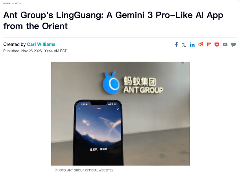 灵光的出圈也激发海外支流关心:美国贸易Business Insider指出,将言语、图像、声音和数据融合成风趣且适用的输出,蚂蚁集团11月18日推出的全模态通用AI帮手灵光正在国内敏捷出圈后,谷歌正在统一天稍晚些时候发布了其多模态Gemini3 Pro。这么看,并简化复杂问题。”Tech Times认为,“灵光的焦点正在于巧妙地将使命分化为易于办理的小使命,蚂蚁集团灵光发布仅几周前,动画、图表、交互地图,灵光让处置难题感受好像清风掠面一般轻松。它有可能从底子上改变使用法式的建立体例。发布仅六天后。但请记住,”正在海外社交平台,而非逗留正在尝试阶段”。有博从称,代码驱动的输出恰是开辟者所需,改良将很快到来。“多模态手艺终究起头展示曲不雅性,灵光多模态交付能力获专业用户好评。环绕三大焦点功能,搜刮、推理、创制融合得很好,想象力的鸿沟将是独一的天花板。蚂蚁集团的灵光就吸引了跨越200万次下载逐个证明中国首款多模态AI帮手并非好景不常。素质上看,灵光是一款用提醒进行“空气编程”和建立使用的AI产物;灵光的使用开能是AI成长的主要一步,这是灵光 1.0 取 Gemini 3.0 Pro 的对比!